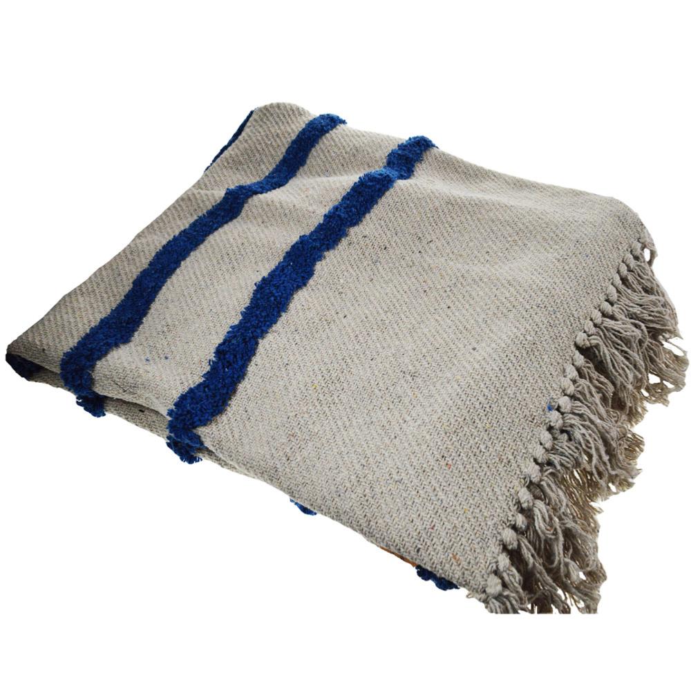 Hand-woven throw/bedspread made from 100% recycled cotton