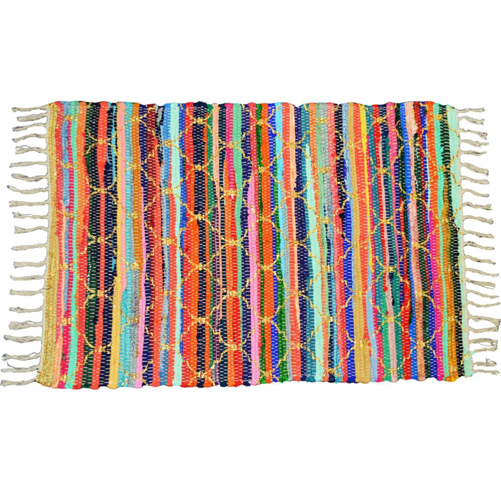 Rug made from recycled textiles, with moroccan style gold detailing